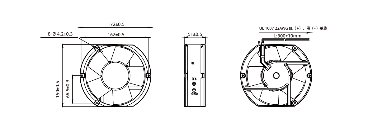 扇叶材质: 耐高温PBT工程塑料,阻燃UL-94V0