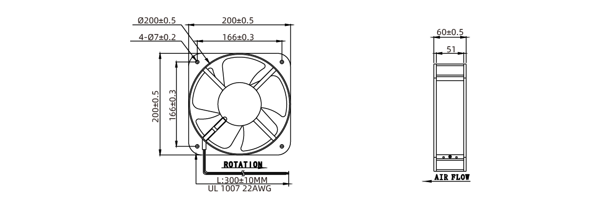 扇叶材质: 耐高温PBT工程塑料,阻燃UL-94V0