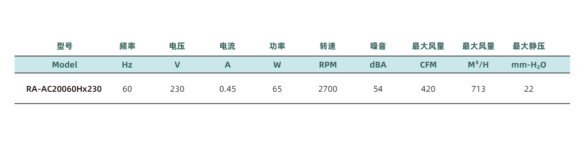 这款AC 20060轴流风扇尺寸为200*200*60毫米,具有坚固的铝合金框架和耐热的热塑性叶片,设计用于各种工业应用,如电子设备机柜、工业机械、以及展示柜等。风扇采用双滚珠轴承设计,确保风扇可以在高温和苛刻环境下长时间稳定运行,使用寿命长达70,000小时。其工作电压为110-120V或220-240V AC。此风扇还具有多种安装方式,支持水平或垂直安装,适用于需要高效散热的应用场景。